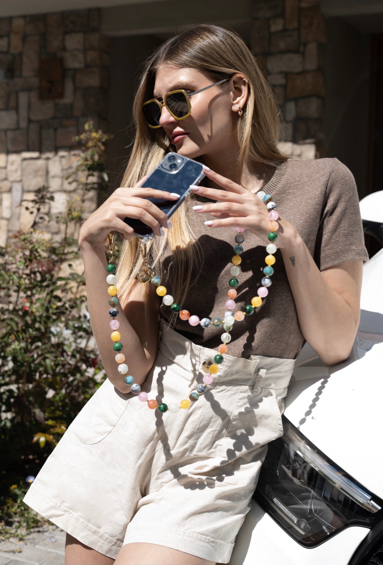 ¡El accesorio imprescindible! Ya no es necesario buscar tu teléfono en el fondo de la cartera. Cadenas perfectas para tener las manos libres mientras haces otra cosa, nuestras correas se pueden llevar al hombro, a la mano o incluso colgar de tu cartera. Nuestras cadenas darán un toque chic a tus atuendos. Puedes quitarle la cadena fácilmente y en cualquier momento, e intercambiarla según tus deseos y atuendos. Puedes adaptar su carcasa con las diferentes cadenas que ofrecemos. La carcasa se vende por separado al igual que nuestro adaptador universal.