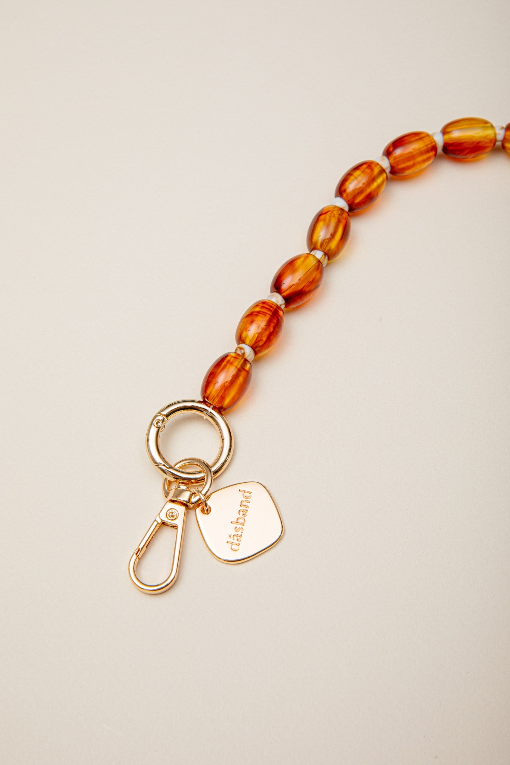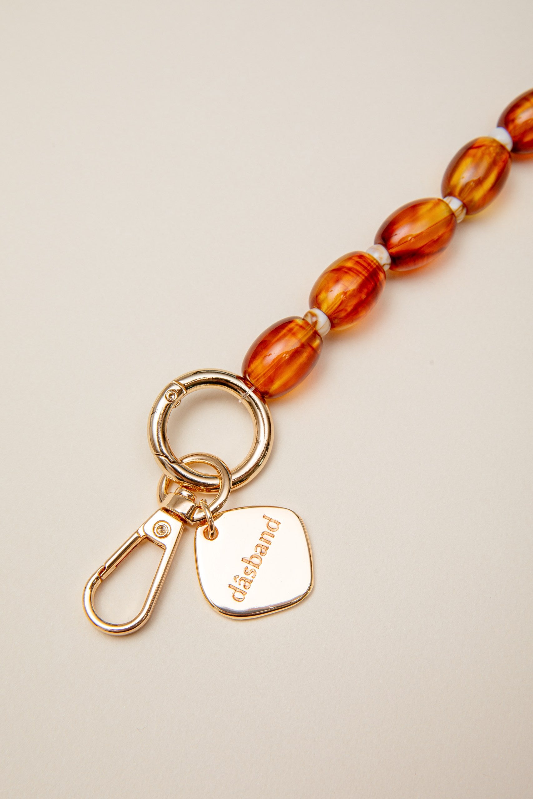 Cadena con resina ovales marrón con herrajes dorados. Largo de 35 cm.